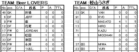 | 4 | 松山うさぎビギナーズ | 0勝3敗0分 |