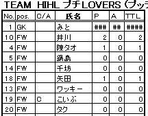 | 3位 | HIHL選抜 プチLOVERS | 2勝2敗0分 |