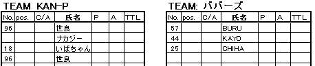 | 2 | KAN−P (かんたく&ぐりんぴ&ポテチ) | 2勝1敗0分 |