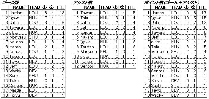 | 3位 | 宮原 NUKES | 1勝1敗1分 |