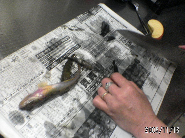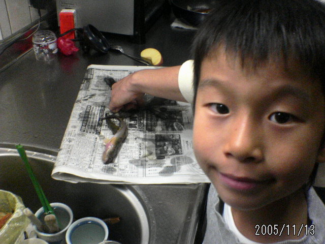 >お母さん料理してくれたんだ。かーさん キャー キャー いいながら、やってくれたよキャー 動いたー キャー 骨がゴリっていうたーってとーさんと にーちゃんは食べなかった。