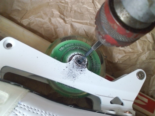 硬い層をつきぬけるといきなり空洞かと思ったら鉛のような柔らか目の層がビスの半分くらいまで続く掘る感じありありで楽しいすぐつきぬけて空洞に手ごたえ無くなる。で最後の難関反対側のビスの先に到達