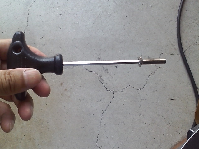 ムリこのビスは掘れないで六角を突き刺して木槌でウチ込んでまわす作戦に変更