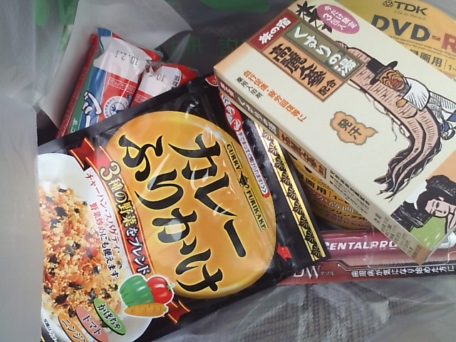 店を出て買い物袋の中見るといらんものいっぱい(笑)いまいるんじゃったんか?そのカレーふりかけやら高麗人参入浴剤やすいんやら たかいんやら