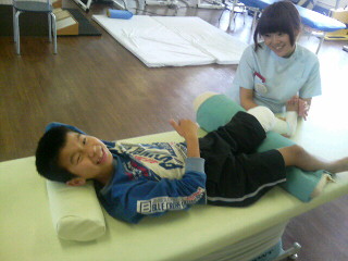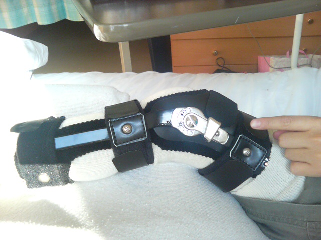 カッコイイ〜〜♪ 昨日からコレつけてリハビリ開始。ひざ90度までまげていいんだよ・・・
