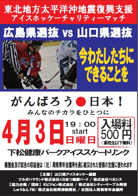 『東北地方太平洋沖地震復興支援アイスホッケーチャリティーマッチ 広島県選抜 対 山口県選抜』