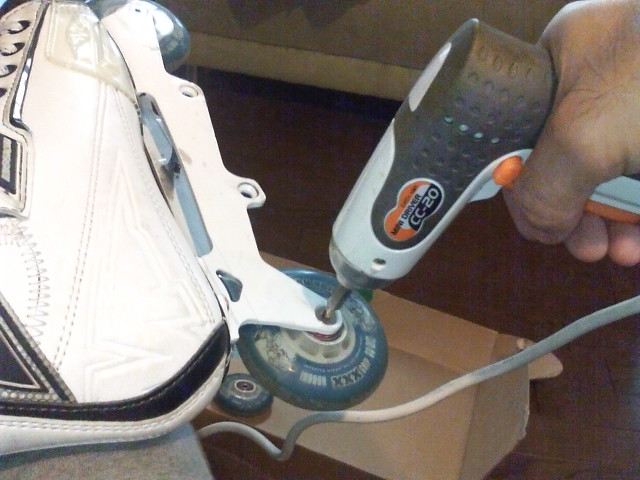 取り出してフツーに履きます。まぁ最近のスケートはオーブン前提なんで、ヒモを締めるとこがそそり立ってますから