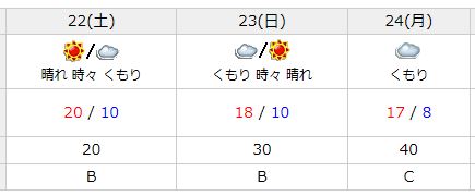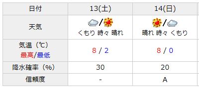 今週末の予定です。天候は問題なさそう。寒そうですが・・・ただし、日曜日は平成26・・・