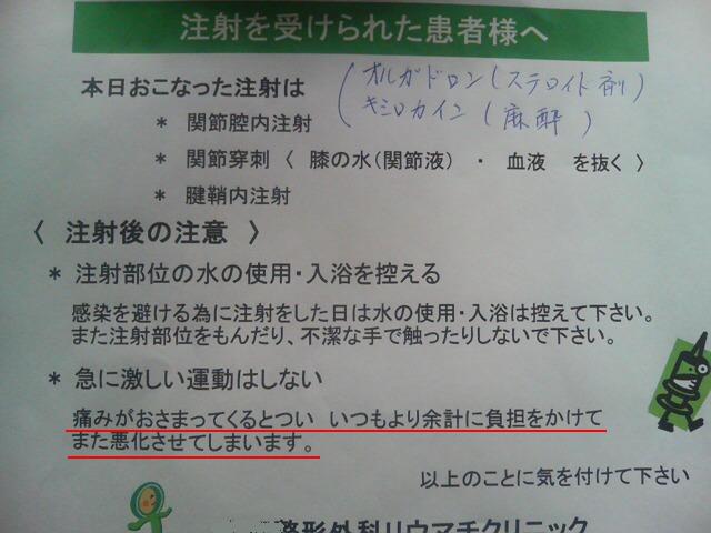 ヒジの関節に注射打ってもらいました