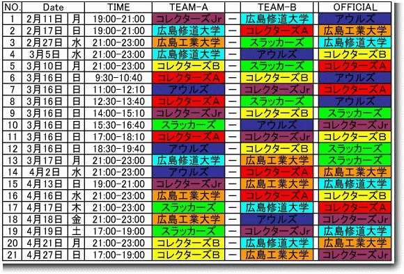 2月11日コレクターズJr 対 広島修道大学が緒戦で