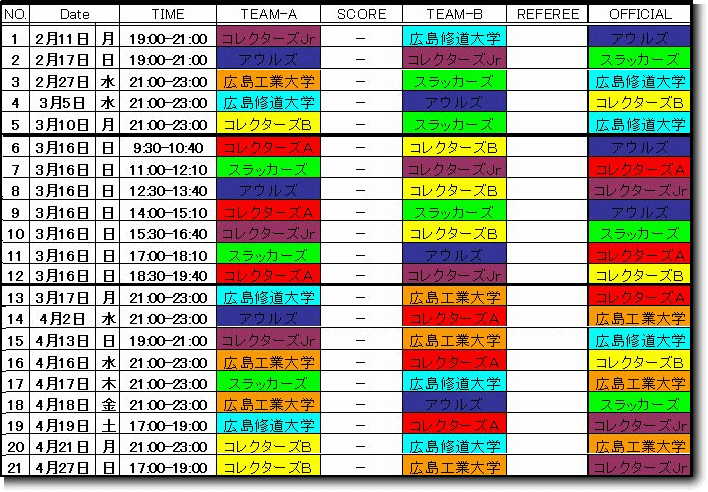 2月11日コレクターズJr 対 広島修道大学が緒戦は変わりません。
