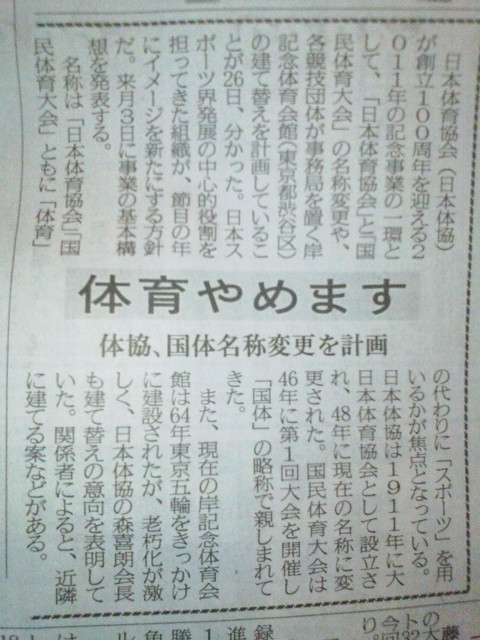 日本体育協会が 「日本体育協会」「国民体育大会」の名称変更を検討しているらしいです