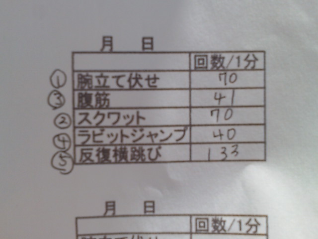ルールはカンタン 1分間に全力で何回できるかを事前に配られた用紙に記録していくだけ