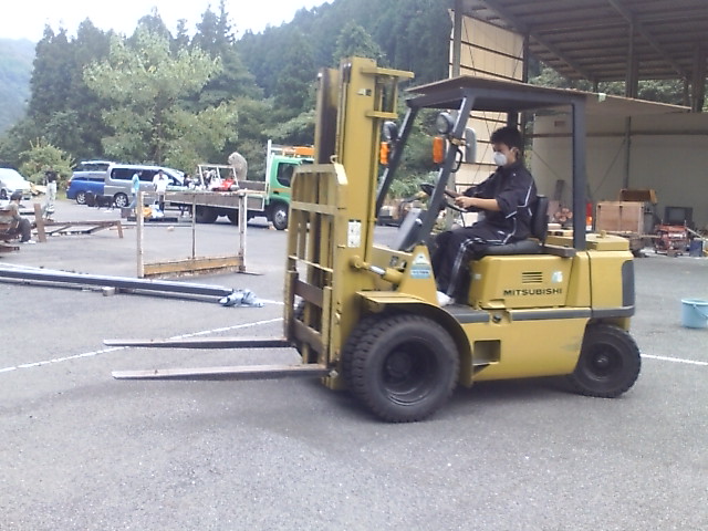 (1) フォークリフトを使ってフェンスを移動させる (最低2名~)