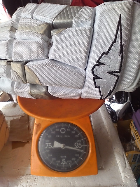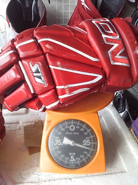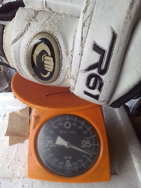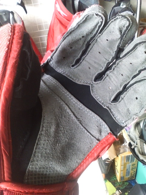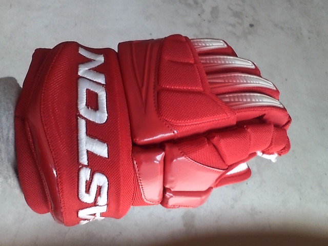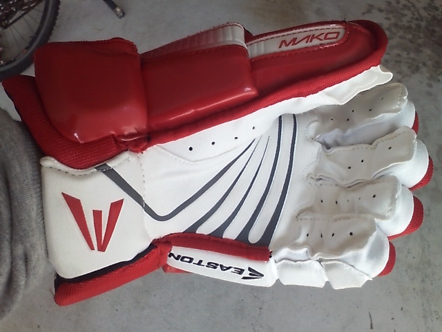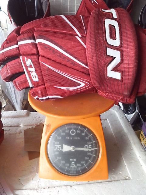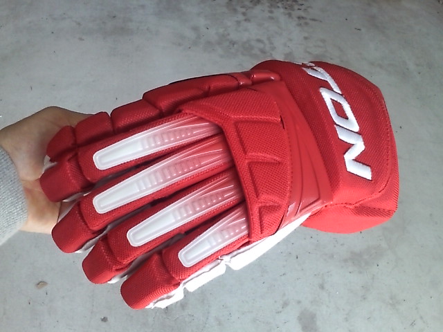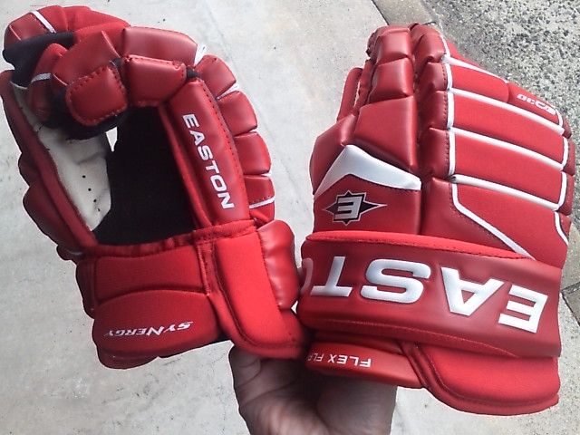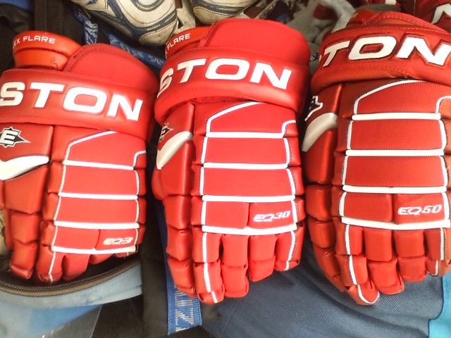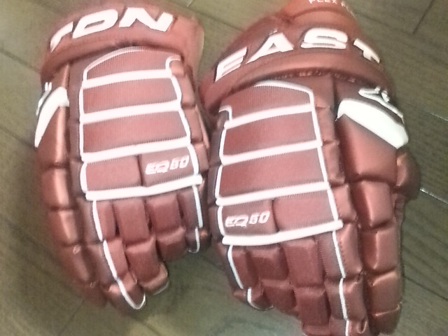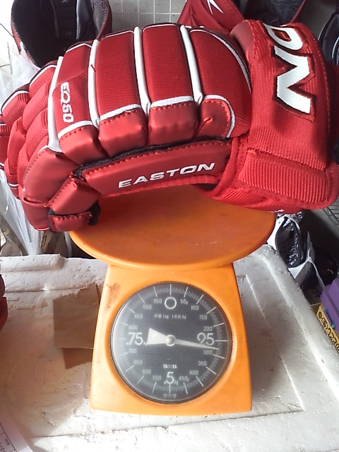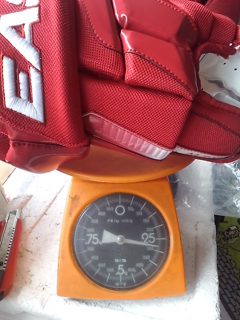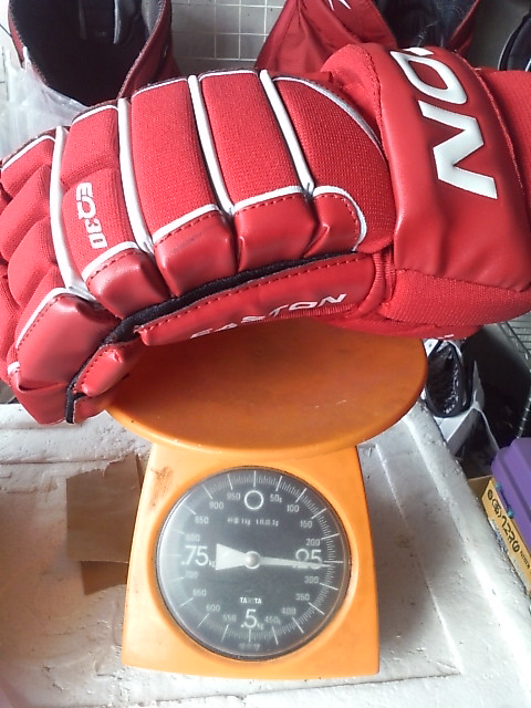 EASTONのグローブって ステルスシリーズとシナジーシリーズがあったわけです STEALTH S17 --> S19 --> RS SYNERGY EQ5 --> EQ50 とトップモデルは変遷 でたまたまここに STEALTH S17 STEALTH S19 ナイロンモデル SYNERGY EQ3 SYNERGY EQ30 SYNERGY EQ50 そして新型 MAKO があったんで比較してみます まずは能書き ステルスシリーズとシナジーシリーズの違いは一言で言うと(たぶん) 今風のデザインで、軽さと柔らかさのステルスシリーズ 古典的な4ロールデザインで、頑丈さと防御性のシナジーシリーズ と言った感じ。 確かに STEALTH S17 S19 は、買って手にとったその日から もう何年も使いつづけたかのような 手のひらの柔らかさ、その半面ヘタるのも早くて 1年もたつと手のひらが伸びちゃう感じ。 握りやすさ重視で 手のひらの部分にストレッチする布が部分的に使われているモデルもありました 逆にSYNERGYシリーズは 手にしたその時は多少固め、でも使い込んでいくうちに手になじむ感じ。 で、新型の MAKOは・・・重さも丁度 ステルスシリーズとシナジーシリーズの中間で 両方のイイトコ取りの感じ。 はじめて使った日は ステルスシリーズほどは柔らかくないですが、シナジーよりは柔らかい。 でもデザインは賛否別れるとこでしょう・・・ 特にこの赤色だと手の甲の指の部分が 『カニカマ』みたいw しかしこの『カニカマ』が実は するどい。 あ、『カニカマシステム』ほんとは、Fast Fingerシステムっていうらしいんですけどね 『カニカマ』で続けます w で・・・・ うごくんですよ。この『カニカマ』 手の甲側のエンドは固定されていなくて 手を握って指を曲げると 手の甲の差し込んであるとこから出て来て伸びる。 手を開くと 奥に引っ込んで縮む・・・ ふつーグローブの指の部分 切れ込みは外側。まああまりないだろうけど握ったときに その切れ目のスキマになにかはいったり、フェンスとかゴールの網にひっかかったり・・・あるはずなんですが このMAKOの『カニカマシステム』w だと 切れ込みはカニカマの内側には行ってて 指の表面はビニール性の皮膜で被われててスムーズ。氷とかに手をついてもスムーズに流れて 手首いためにくくなってたりします。 手のひらの部分は 白いスエードで補強されてます すげーよごれそうですが カッコイイです。手を振ると目立ちますw では、重さ比べ・・・ まずは S17 皮モデル 続いてS19 ナイロンモデル 最軽量ですが 表も裏もすぐ破れる w EQ50 意外と軽いです 基本ナイロンで部分的に合成皮革です EQ30 これも軽い 基本ナイロンでほんの一部合成皮革です ついでなんで EQ30 と EQ50 の違い 手のひらの補強が多少チガウのと 手首のカフの部分が EQ50 が動く・・・ いりません。EQ30 でいいですね。 EQ50 EQ30 EQ3 と EQ30 は ロゴのちがいしか私にはわかりません ハナシはもどって 重さ比べ カニカマシステムのMAKO EQ50 くらいですね びっくりするほど軽くないです きっとカニカマシステムが重いんです。w ついでに 転がってたやつも・・・・ TPS の皮モデル R61 穴だらけのくせに重いですねw