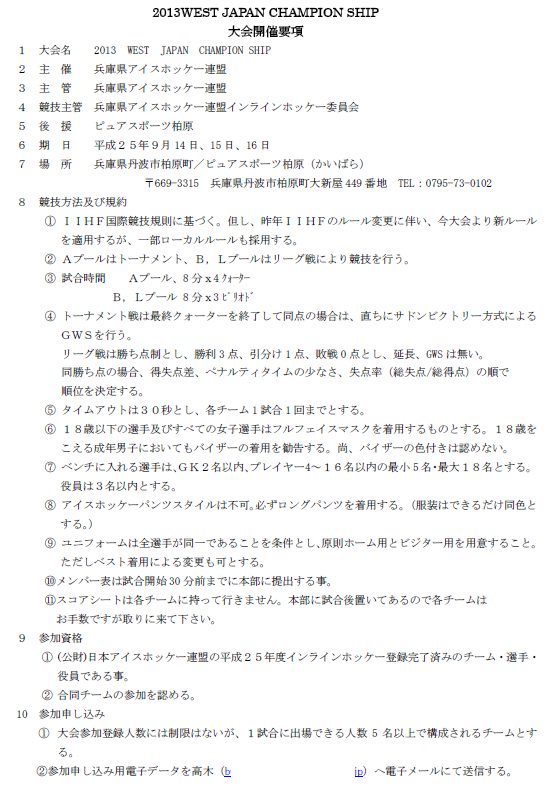 2013WEST JAPAN CHAMPION SHIP 大会開催要項抜粋