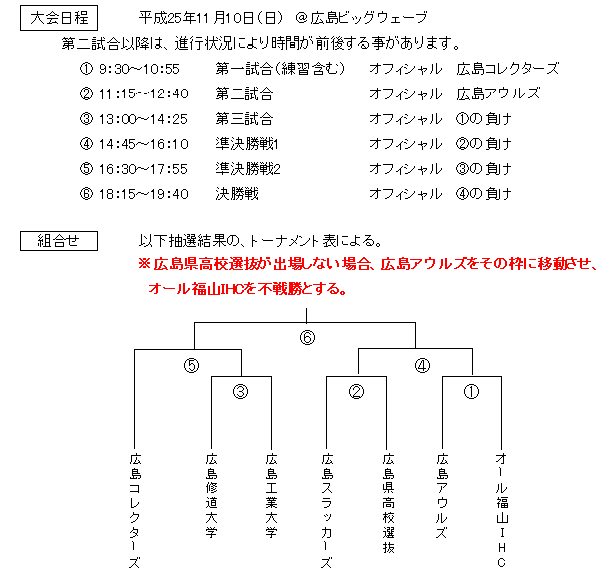 アイスホッケー 第69回国体広島県・市予選(選手選考会を兼ねる)が 平成25年11月10日(日)