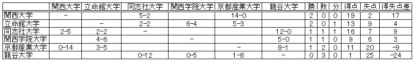 09/26 21:00 関大 同志社大学 2-2 立命館大学