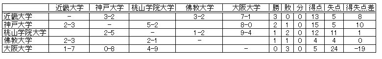 09/19 21:45 西宮 大阪大学 0-8 神戸大学