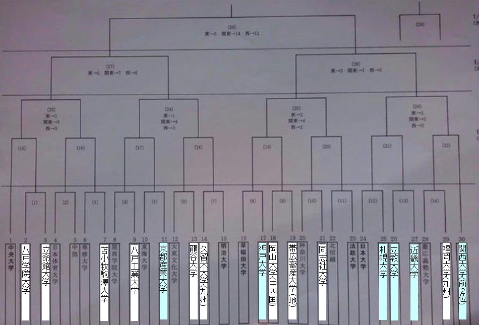 専修大学、東海大学、大東文化大学、日本体育大学、神奈川大学、慶應義塾大学、立教大学