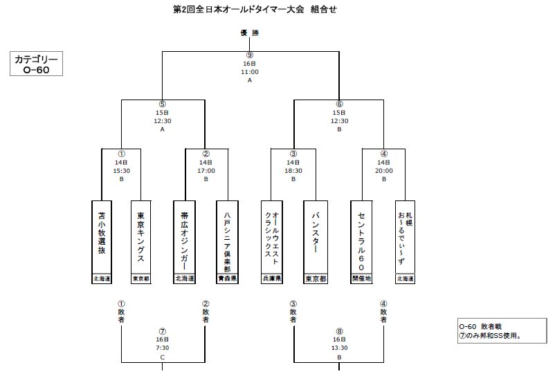 ①KOHAクラシックス 1 (0-3, 1-4, 0-2) 9 シニアモンスターズ