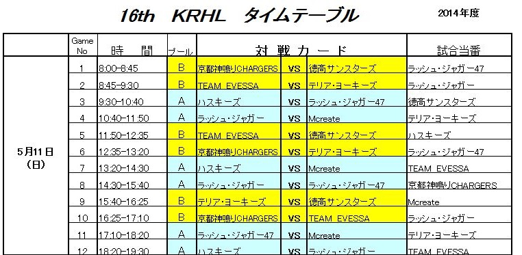第16回関西ローラーホッケーリーグ(KRHL) 出場チームと、日程が決まりました